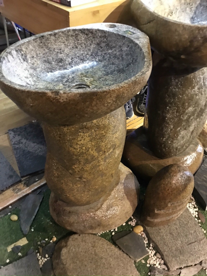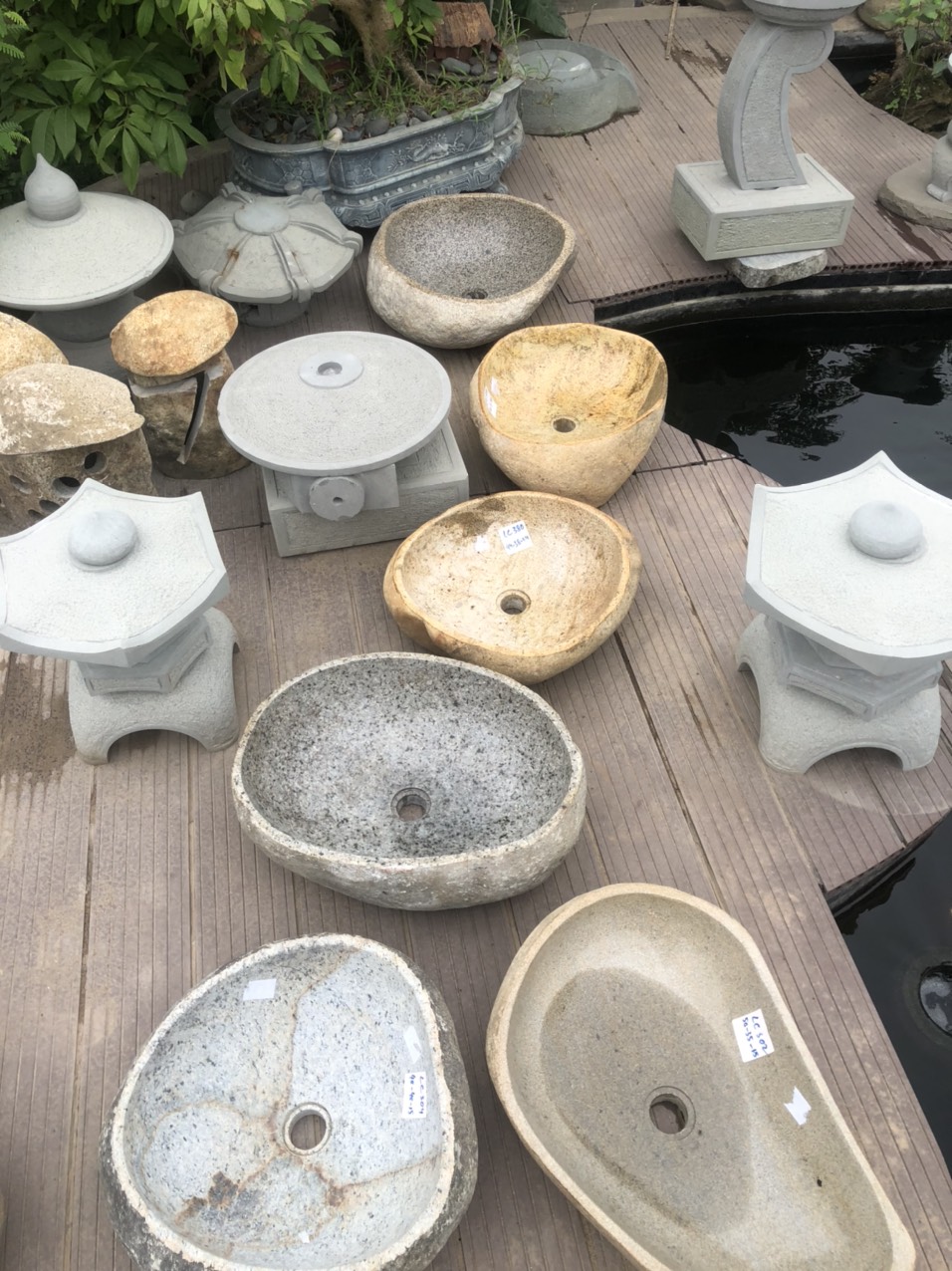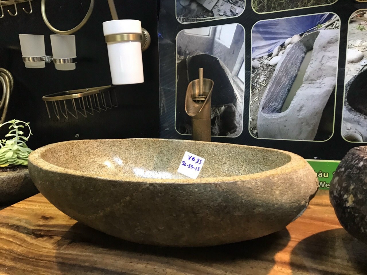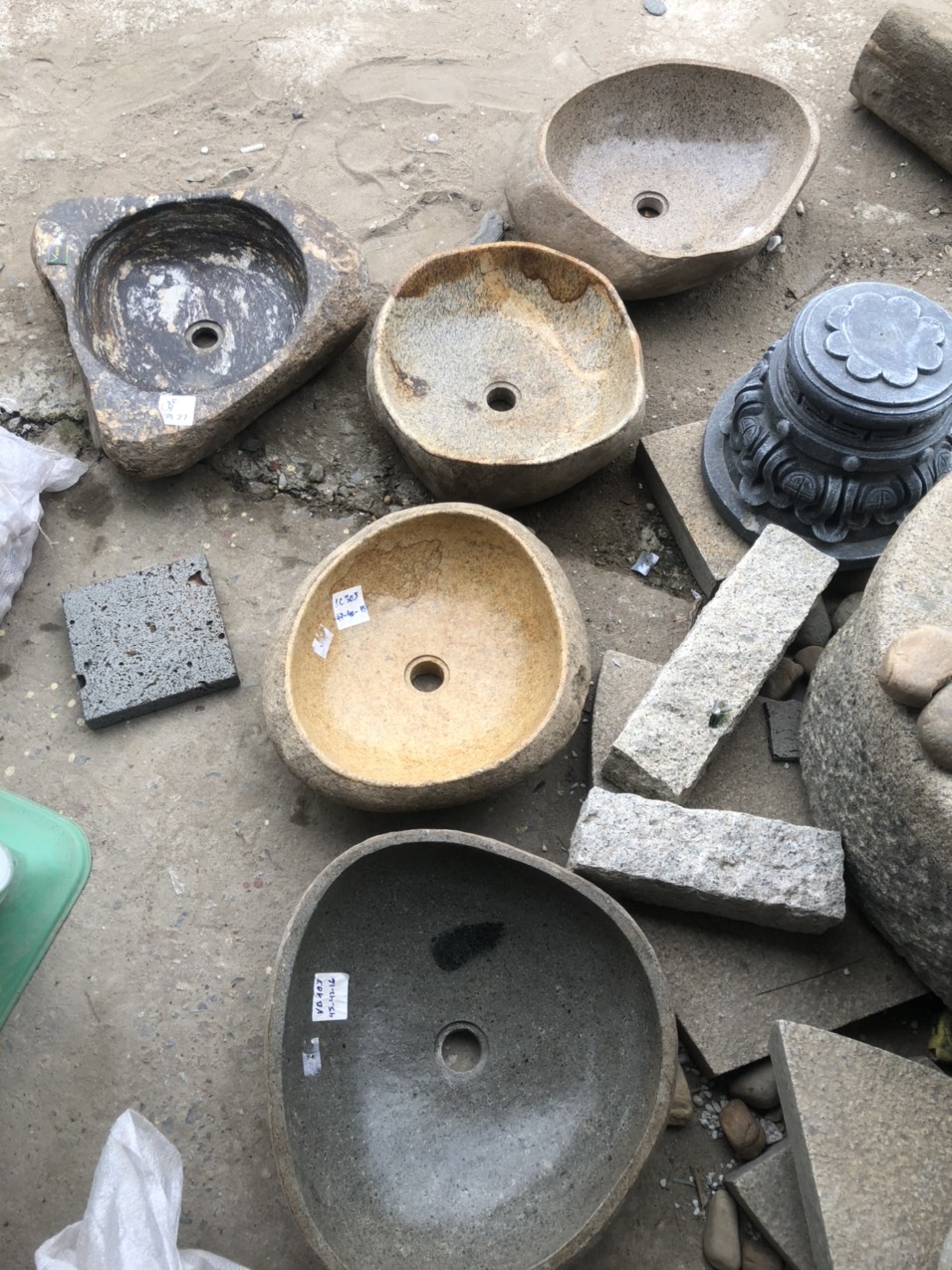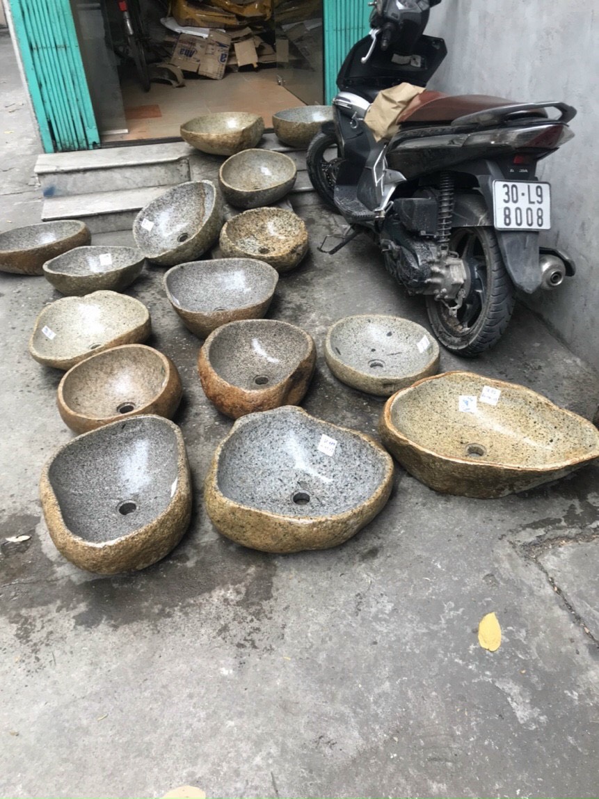 Những cục đá cội ngoài tự nhiên ngoài suối, sông, hồ được thợ đá nhà nghề khoét rỗng lòng thành chậu rửa.