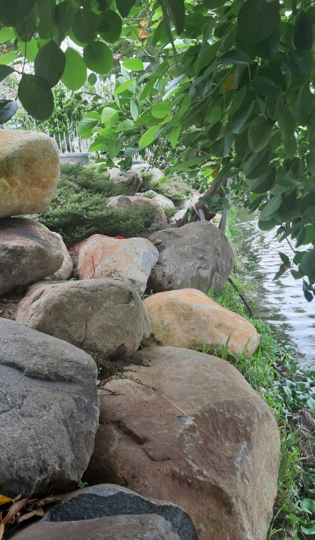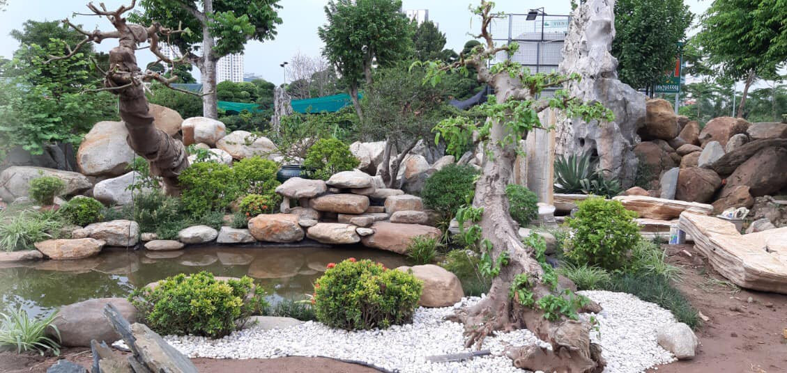 Trong thi công sân vườn cũng thế. Sự bào mòn theo thời gian dưới tác động của dòng chảy, nước mưa, điều kiện thời tiết...đã làm cho đá nhẵn nhụi và có những chấm vân, đường nét rất chân thật, sống động. Với kích thước không quá to, các nhà thi công hay người chơi sẽ thoả sức lựa chọn hình khối, màu sắc vàng, trắng sao cho phù hợp nhất.