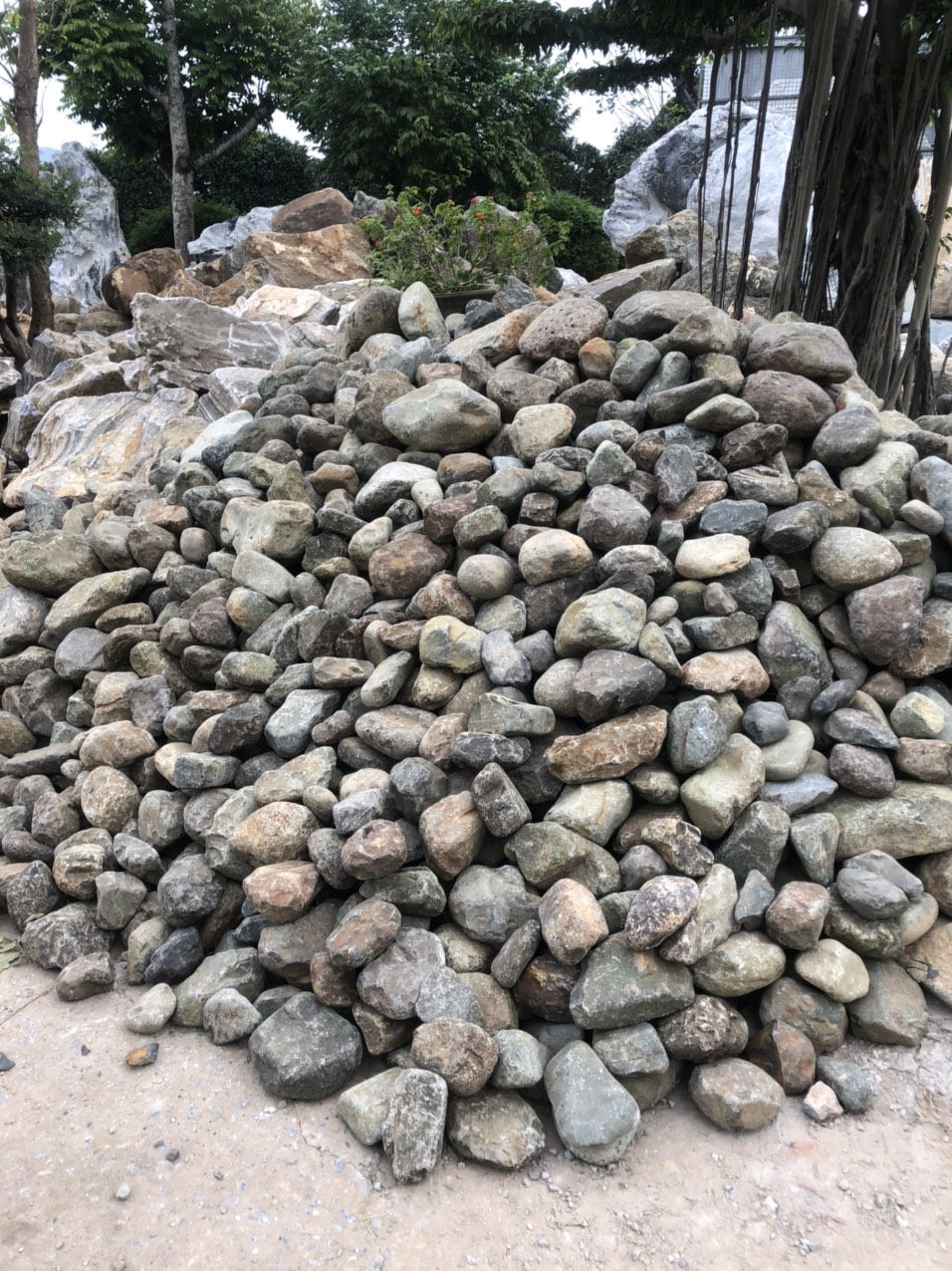 Đá cuội thương được dùng bo bồn cây trang trí, tạo đường dạo lối đi, đặt điểm các khóm hoa.