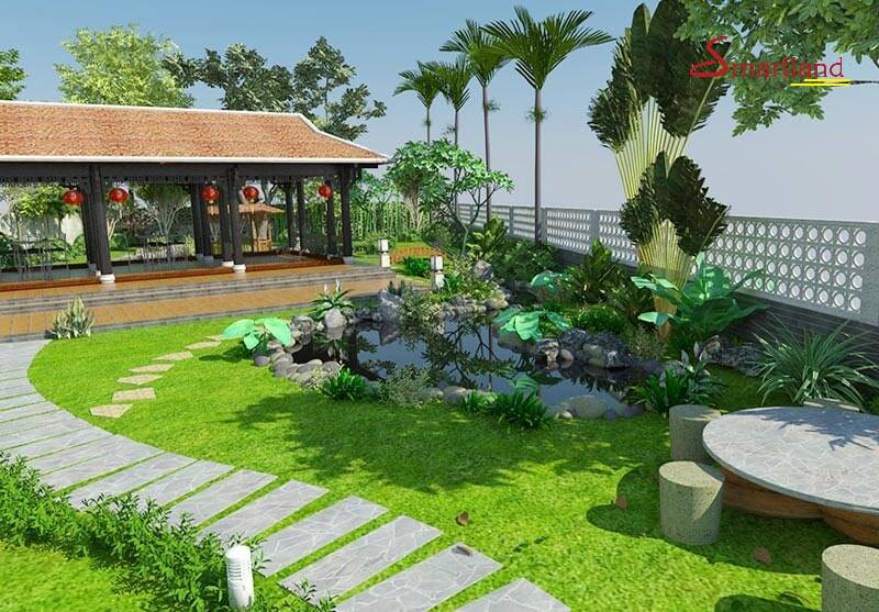 Sân vườn là khoảng không gian được thiết kế và bố trí sinh động, hài hòa của cảnh quan thiên nhiên