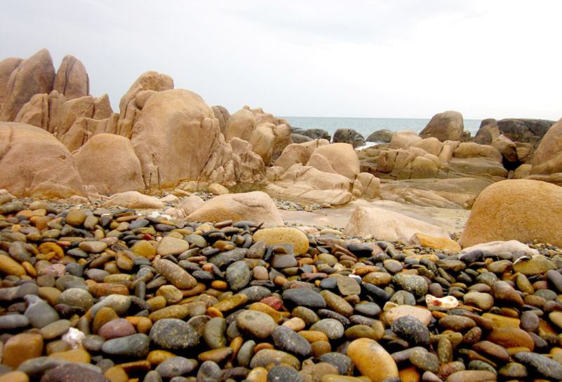 Qua thời gian, do tác động của các yếu tố tự nhiên như dòng chảy, gió thổi và sóng biển xô đập, những viên cuội to vỡ ra, ma sát lại với nhau tạo thành những viên đá tròn trịa mang vẻ đẹp phóng khoáng.