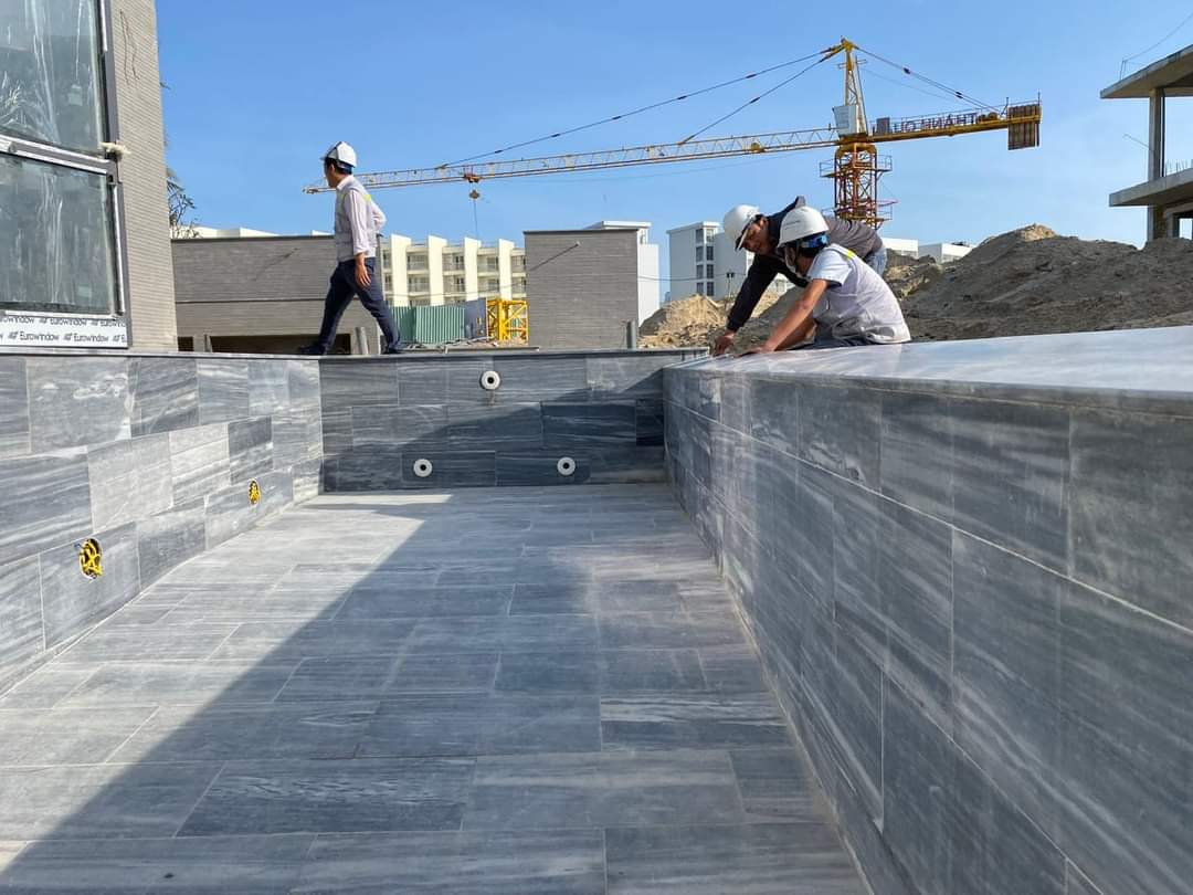 Cách lát đá sọc dưa hồ bơi so le